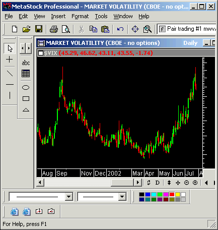 Tidligere i vinter var det lite volatilitet, men nå i juli har volatiliteten formelig eksplodert. Se bare på det daglige chartet til VIX, som måler den implisitte volatiliteten til noen utvalgte aksjer (og brukes til å måle volatiliteten i markedet: