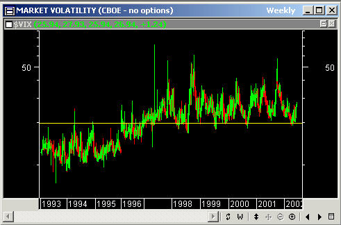 En indikator som kalles VIX illustrerer at volatiliteten er lav (VIX måler den implisitte volatiliteten i et utvalg opsjoner):